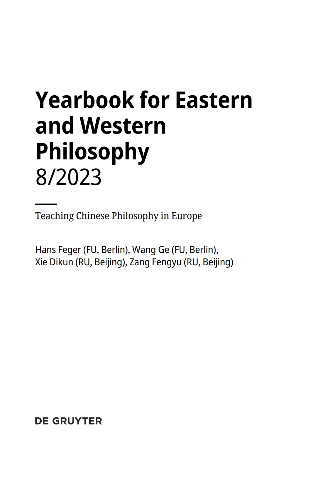 近日,《东西方哲学年鉴》(第八卷)出版,该卷由汉斯·费格尔教授、臧峰宇教授、谢地坤教授、王歌教授共同主编,主题为“在欧洲教授中国哲学”(Teaching Chinese Philosophy in Europe)。