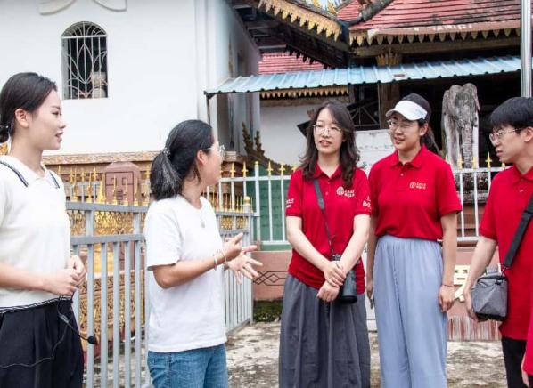 在西双版纳傣族园,调研团师生实地查看了傣族传统村寨保护和建设情况,真切感受傣家庭院的自然之美,了解传统民居在现代社会的技术更新;跟着当地居民学习傣族打招呼用语和日常称谓,领略曼妙灵动的傣族孔雀舞,并学习孔雀舞的基本手势;在澜沧江畔眺望边境小镇景哈乡,既领略祖国山河之壮丽,又于“属于中国领土”的神圣标语中增强忧患意识、风险意识和国防观念;在万人泼水广场观看象征吉祥祝福的泼水节盛况,感受傣族文化的独特魅力与欢乐氛围。