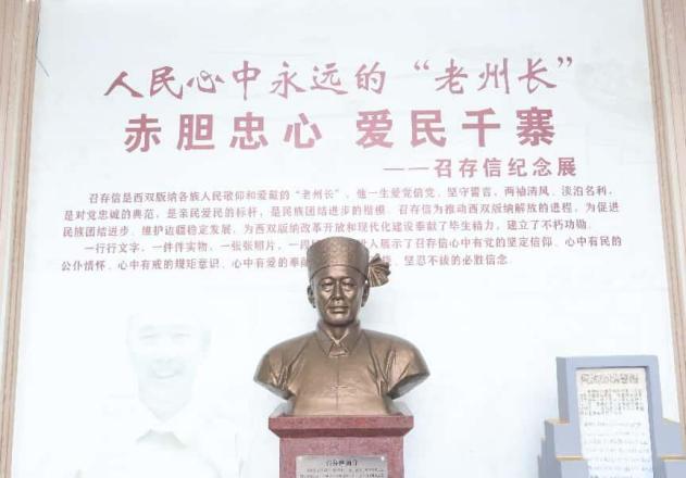 在勐罕镇曼团村,巍然矗立的曼团联席会议纪念碑,深刻展现了西双版纳各族人民“身在边疆、心向中央”的爱国情怀,在当地村民带领下,调研团师生走进召存信纪念馆,听取这位矢志不渝跟党走的“老州长”的故事。召存信深受西双版纳各族群众尊重,他在民族危难之际挺身而出,十五岁时就组织自卫队抗击日本侵略者,在抗战胜利后主动寻找党组织和解放军,带领各族群众配合部队渡过澜沧江、解放西双版纳全境,在建州后连续40年担任西双版纳傣族自治州州长,为当地建设事业和民族团结无私奉献、殚精竭虑、鞠躬尽瘁。“老州长”的光辉事迹和崇高精神激励着大家在新时代新征程上坚定不移听党话、矢志不渝跟党走,踔厉奋发、勇毅前行。